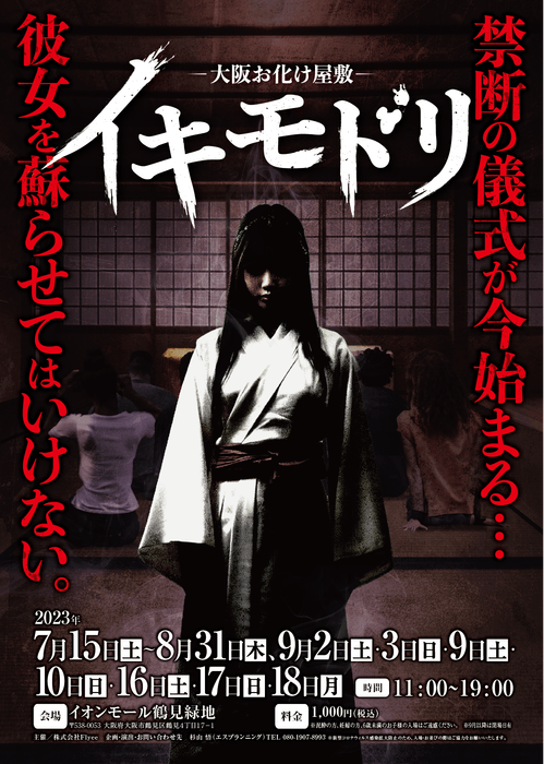 イベント企画 エス・プランニング(所在地:広島県広島市、代表:杉山 悟)は、夏季限定のお化け屋敷を大阪でダブル開催することが決定いたしました。第1弾は2023年7月15日(土)~9月18日(月祝)の期間中、イオンモール鶴見緑地2階特設会場にて「イキモドリ」を開催。第2弾は2023年7月22日(土)~9月18日(月祝)にイオンモール堺鉄砲町2階特設会場で「アカイヘヤ」を開催いたします。(※いずれも9月は平日休業)