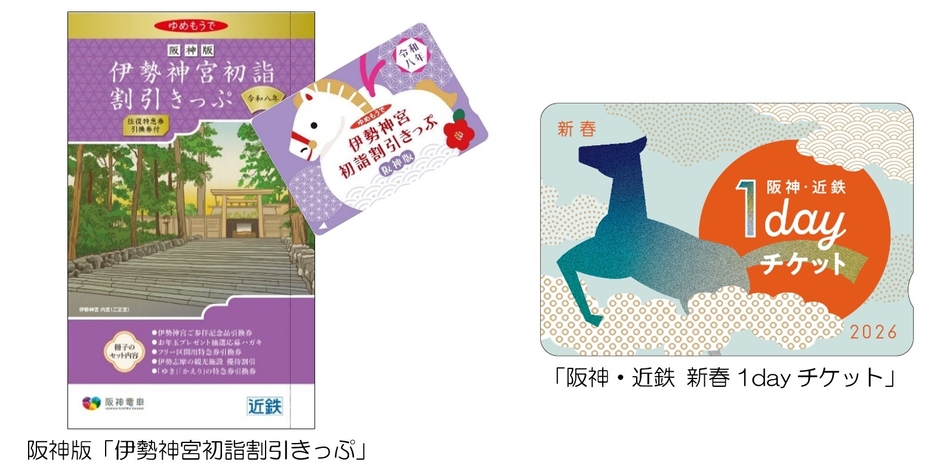 阪神電気鉄道株式会社(以下、阪神)と近畿日本鉄道株式会社(以下、近鉄)では、阪神・近鉄沿線の初詣・初旅をお楽しみいただける阪神版「伊勢神宮初詣割引きっぷ」と「阪神・近鉄新春1dayチケット」を発売します。
