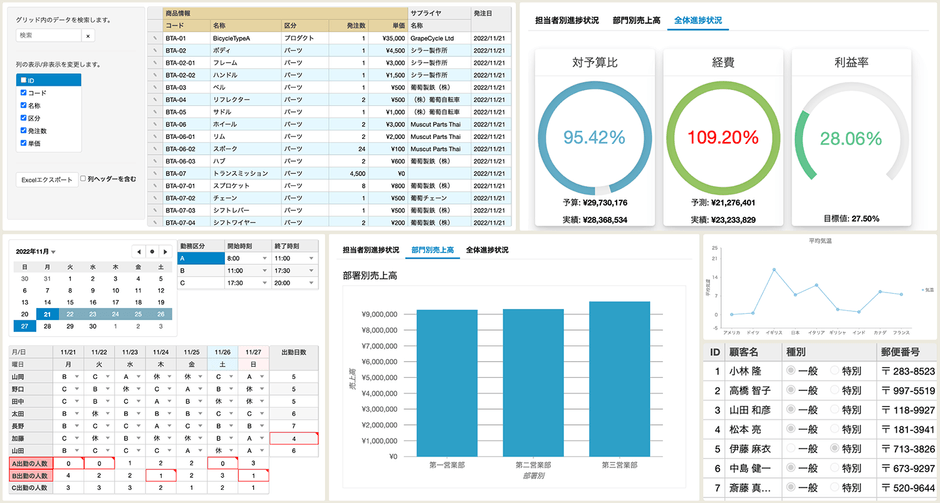 勤務シフト表や営業データ管理などの実用サンプルを 追加したJavaScript UIライブラリの最新版を発売