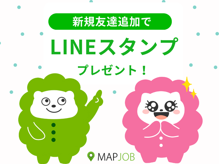 MAPJOBキャリアの公式LINEアカウントを友だち追加するだけで、まぴるんの新作スタンプを無料でGETできます!
