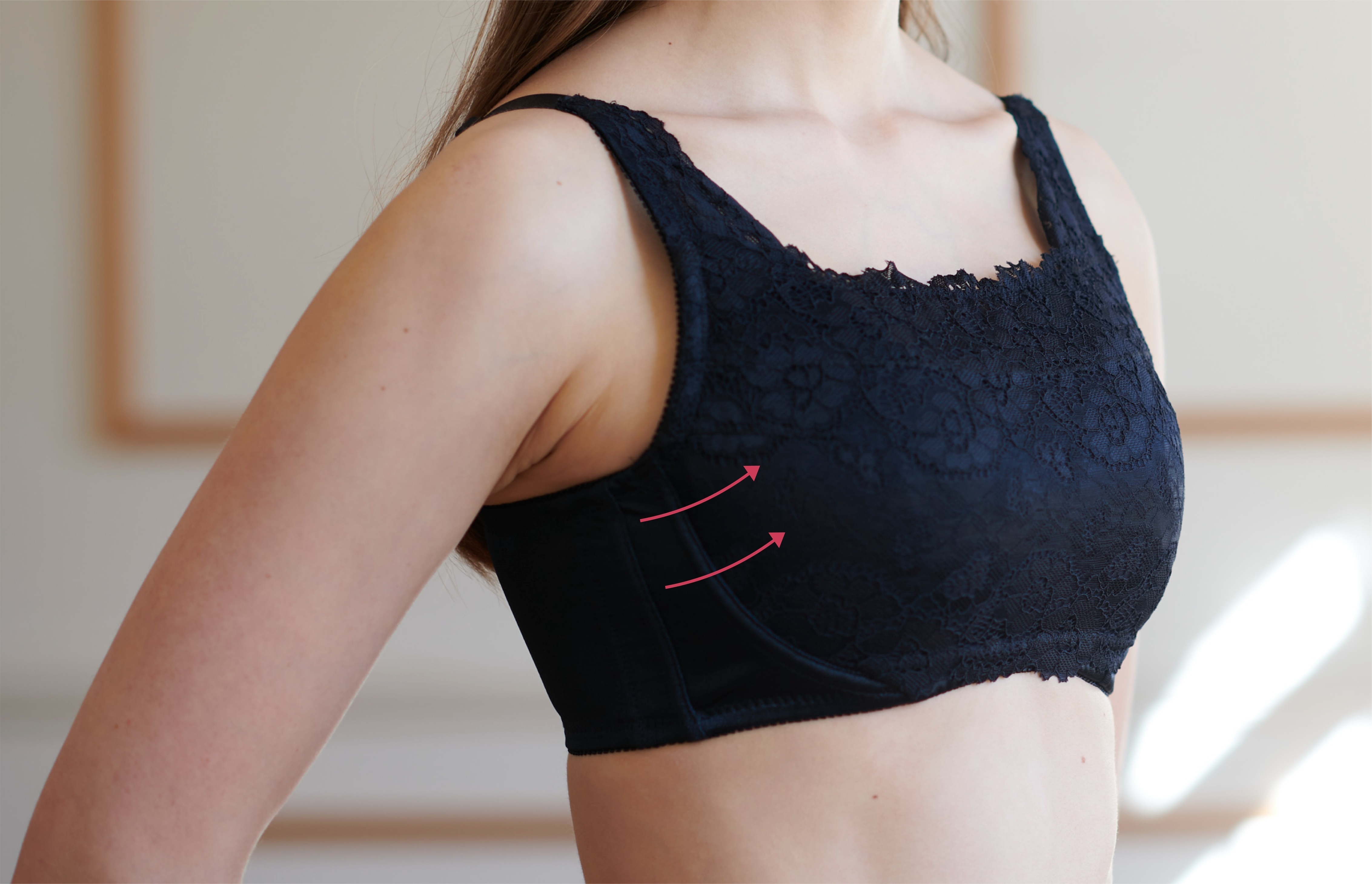 しっかりバストをキャッチするU字型ワイヤーで形も自然のままにしっかりボリュームダウン。