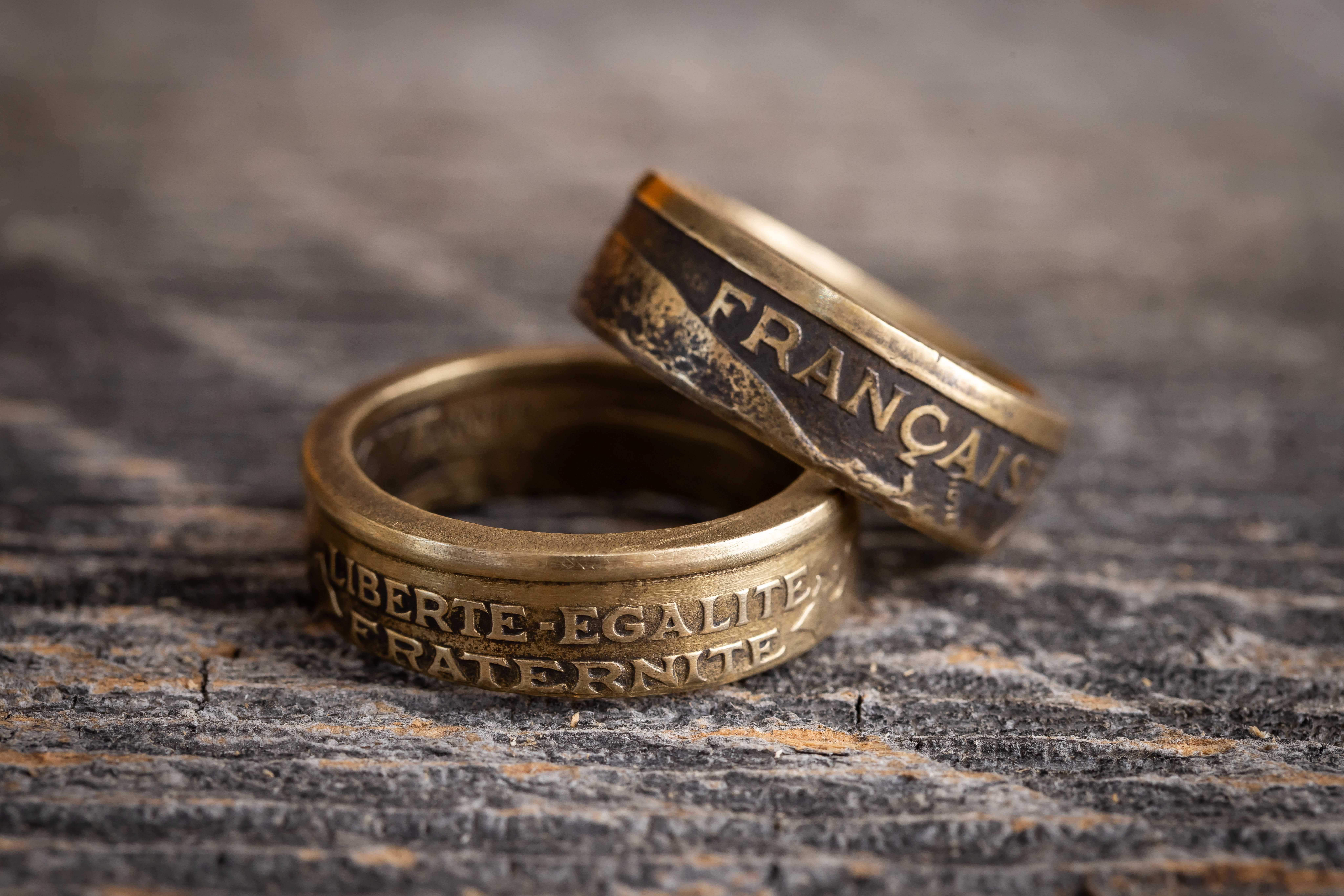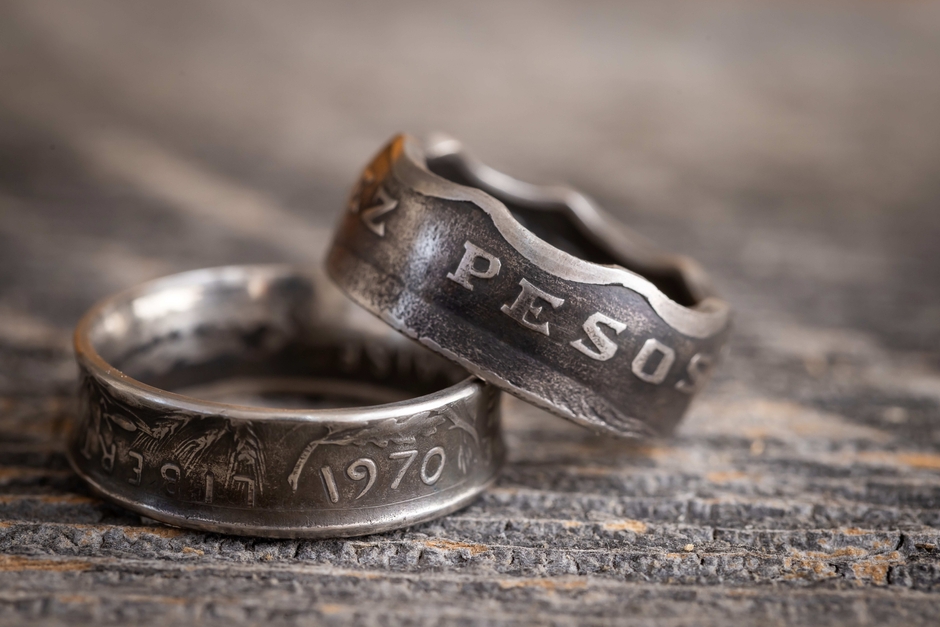 コインの模様がそのまま指輪の彫刻となり、一つひとつ異なる表情に仕上がります。