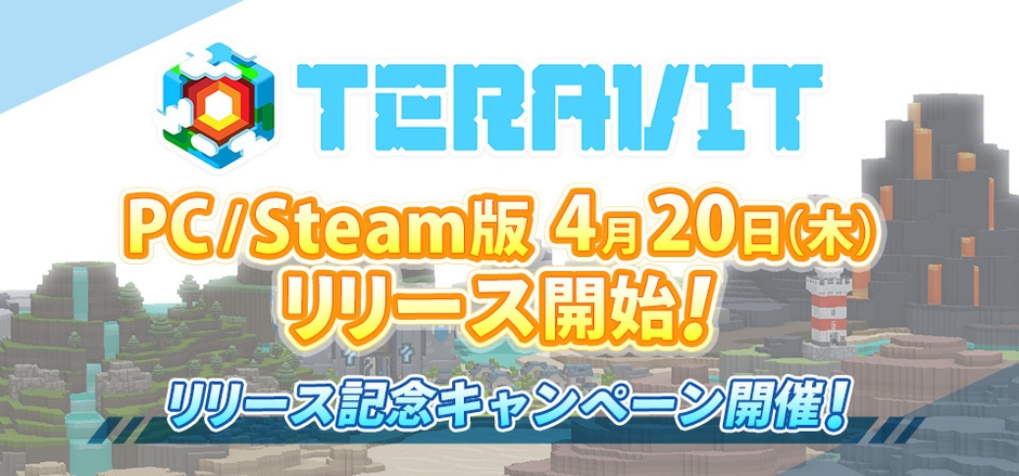 みんなで作るサンドボックスゲーム『テラビット』 PC/Steam版が本日4月20日15時にリリース! 100万円が参加者全員に山分けされる豪華キャンペーンを開催!