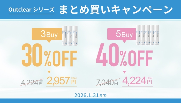 今回の価格改定に先立ち、日頃よりアウトクリアシリーズをご愛用いただいているお客様へ感謝の気持ちを込めて、期間限定の特別キャンペーンを実施いたします。
