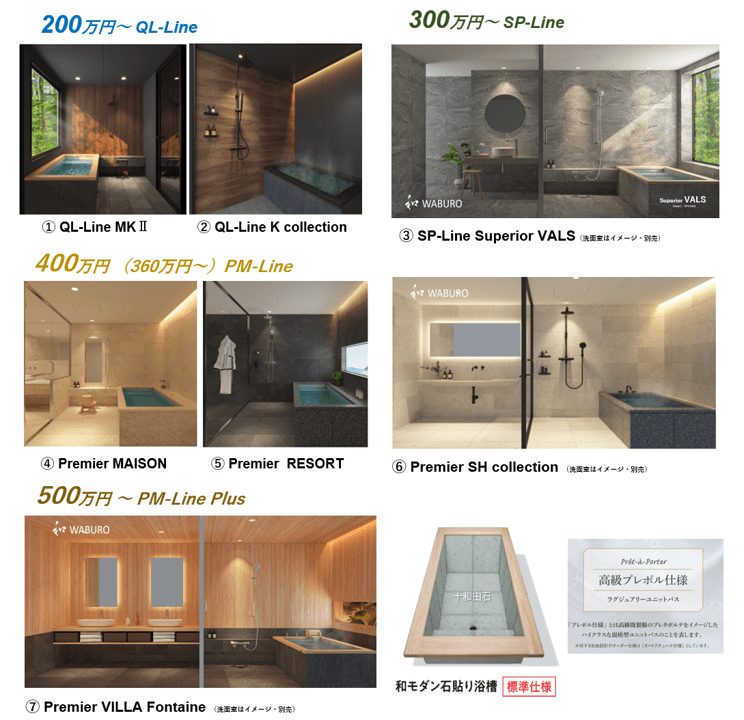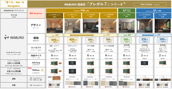 【和 WABURO 物語】第6章 「和 WABURO」は、お客様視点で分かりやすい 「簡単選べる 規格型 UB ラインナップ7シリーズ」が完成 『WABURO UB プレタポルテ「プレポル7」シリーズ』とネーミング