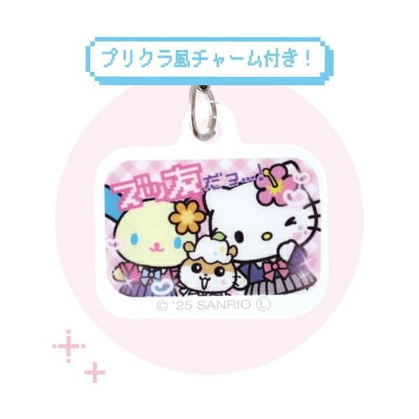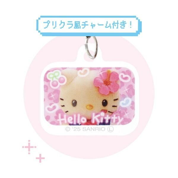 平成感のある落書きと質感のプリクラ風チャーム。ギャルキティの制服姿は当たり前に可愛い!
