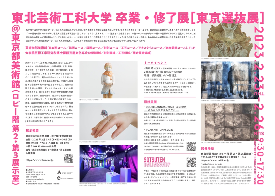 東北芸術工科大学が東京都内各所で3つの美術作品展を同時開催 【卒業・修了展[東京選抜展]/ TUAD ART-LINKS 2023/DOUBLE ANNUAL 「反応微熱ーーこれからを生きるちからーー」】