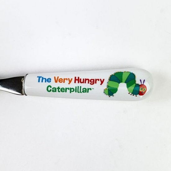 持ち手を見ると、かわいいはらぺこあおむしを発見!カラフルな英字もオシャレですよね♪