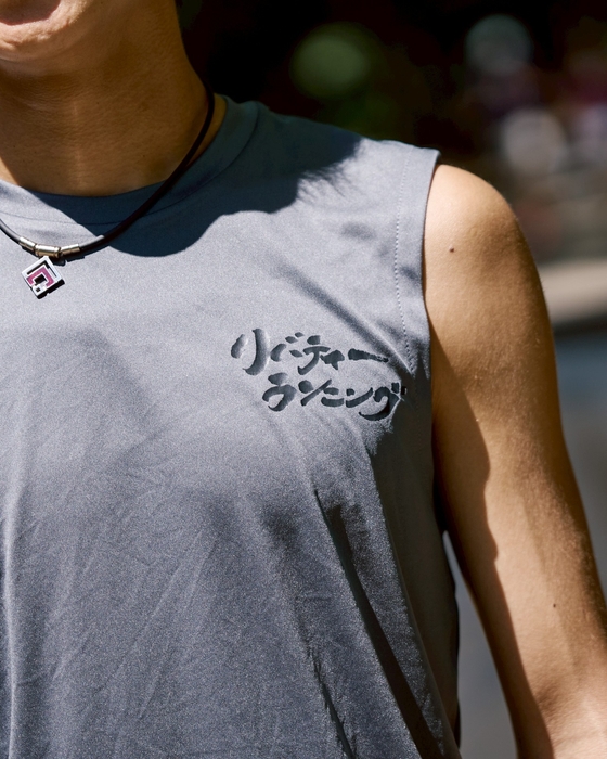 こわだ君が掲げる、「Liberty Running」「リバティーランニング」「自由走人」がプリントされたノースリーブ3種と、赤い髪のキャラクターで親しまれている、こわだ君がモチーフのイラストがプリントされたビブス留め1種を販売します。