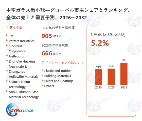 上記の図表/データは、QYResearchの最新レポート「中空ガラス微小球―グローバル市場シェアとランキング、全体の売上と需要予測、2026~2032」から引用されている。