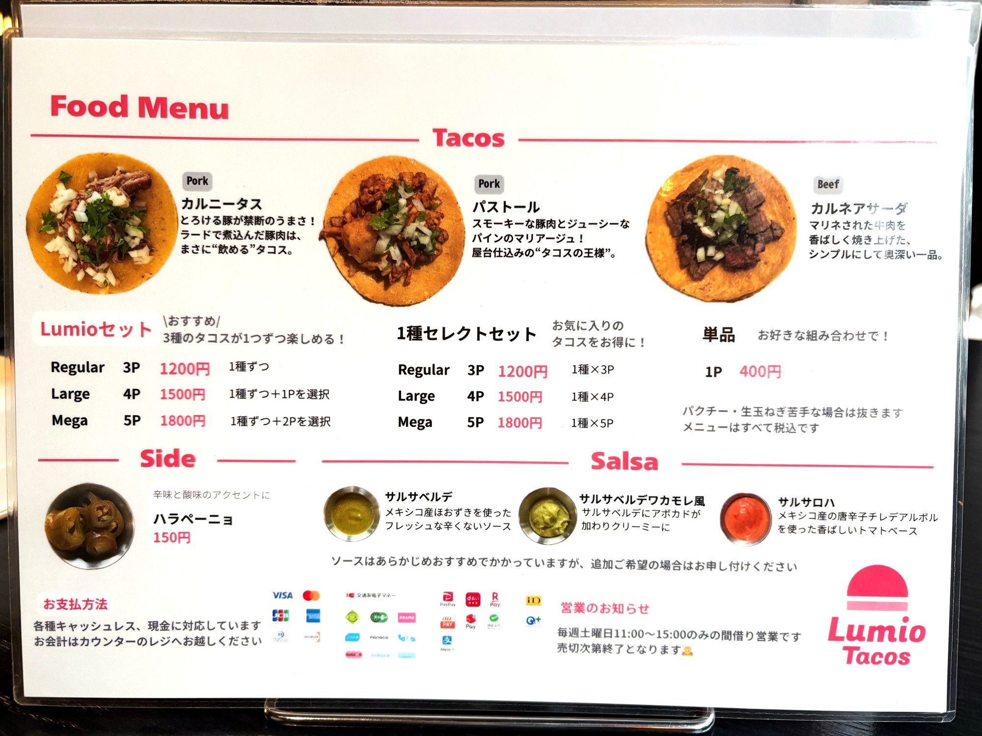 店舗名 Lumio Tacos(ルミオ・タコス)