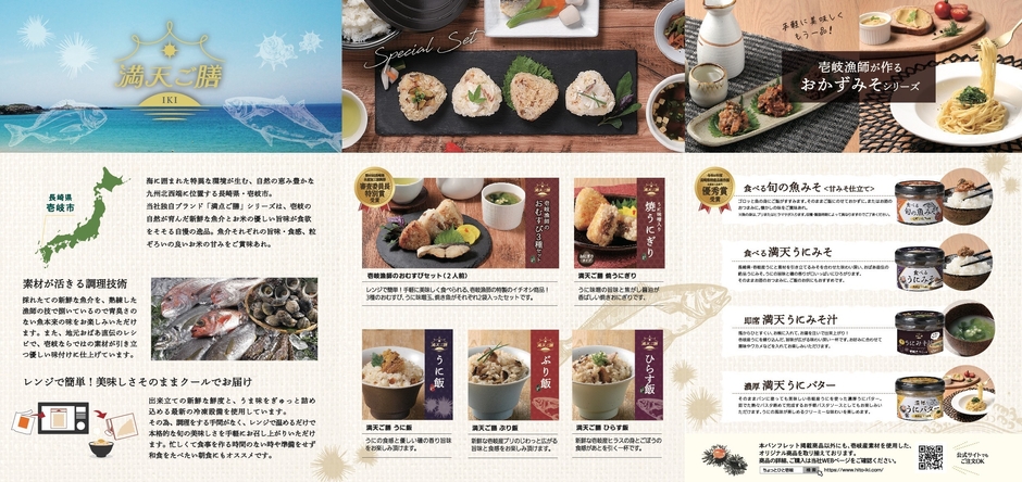 独自の製法で美味しくない美味しくないガンガゼウニを美味しいウニ『満天ウニ』に仕上げ、磯焼けの原因であるガンガゼウニを利用した商品開発をしており、満天ウニみそや満天ウニ飯などのヒット商品を作ってまいりました。
