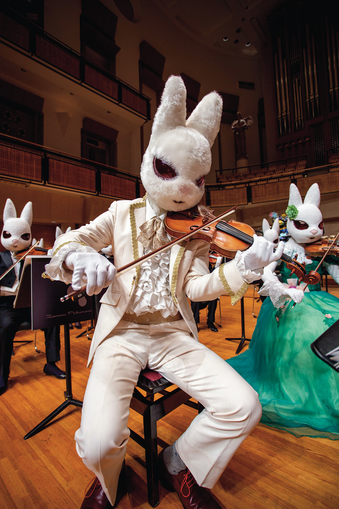 「弦うさぎ」(うさぎの弦楽四重奏)「サキソフォックス」(キツネのサックス四重奏)といった動物の仲間たちと行う、親子のためのコンサート「音楽の絵本」は、全国各地のホールで話題となり、海外公演も含め年間約150を数えます。2011年にはオーケストラ「ズーラシアンフィルハーモニー管弦楽団」を結成。これまでのコンサートから更に一歩踏み出し、慣れ親しんだ音楽をより交響的に紡ぐ「シンフォニック童謡」をテーマに展開。子どもたちのクラシック音楽への興味を一層高めています。