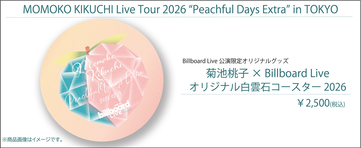 株式会社阪神コンテンツリンクでは、菊池桃子の3年連続となるビルボードライブでのソロ公演を記念して、限定オリジナルグッズをオンラインショップ【Shop.Merchan.jp(ショップ・マーチャンドットジェイピー)】にて、2026年2月13日(金)12:00より販売いたします。一昨年、昨年と大好評を博した「オリジナル白雲石コースター」、今回も“桃”をモチーフにした可愛らしいデザイン仕様となっています。ぜひこの機会にお買い求めください。