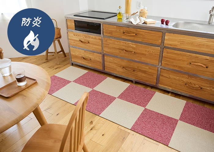 日本防炎協会の防炎性試験に合格した安心・安全のタイルカーペットです。