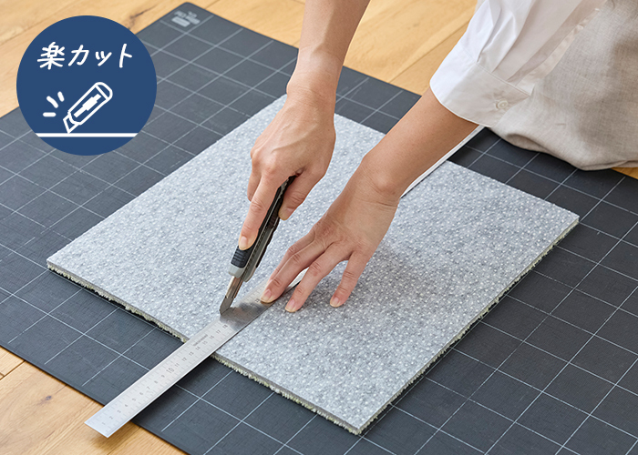 裏面が不織布のためポリ塩化ビニルのタイルカーペットとは違い、強く力を入れずにカッターでカットが可能です。