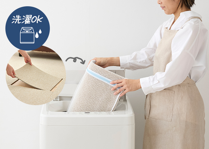 水分をこぼしたりしても大丈夫。汚れた箇所を取って洗うだけ!!通常のカーペットやラグよりカンタンにお洗濯できます。
