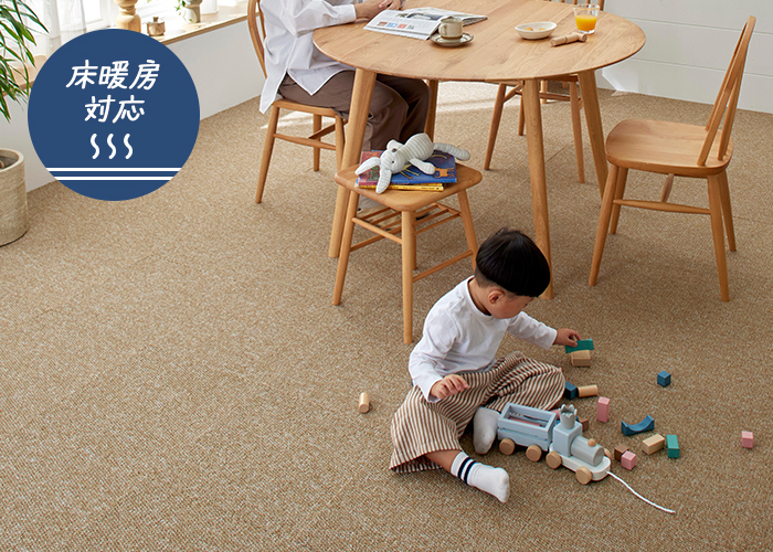 床暖房+タイルカーペットで寒い季節も暖かく過ごせます。
