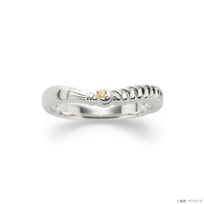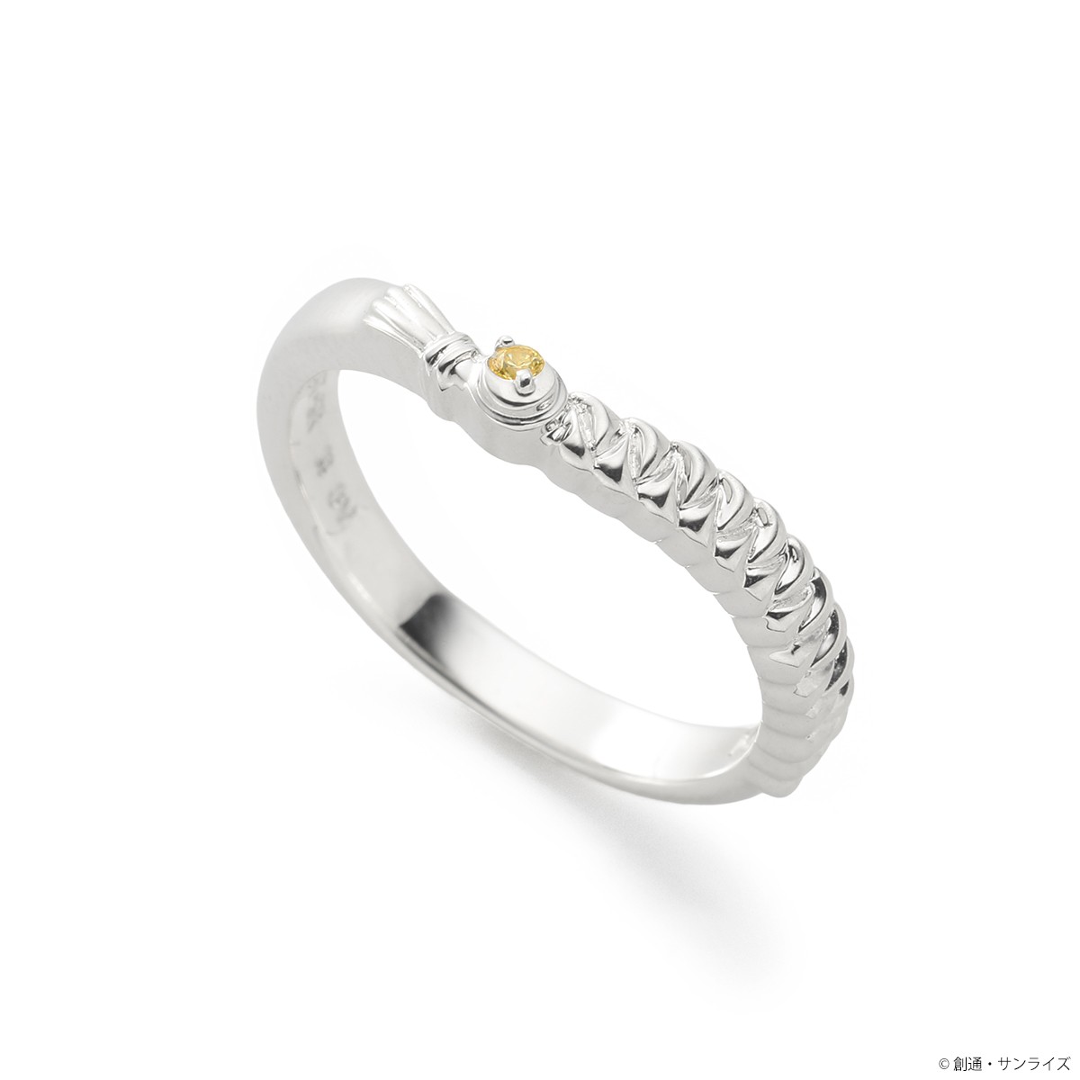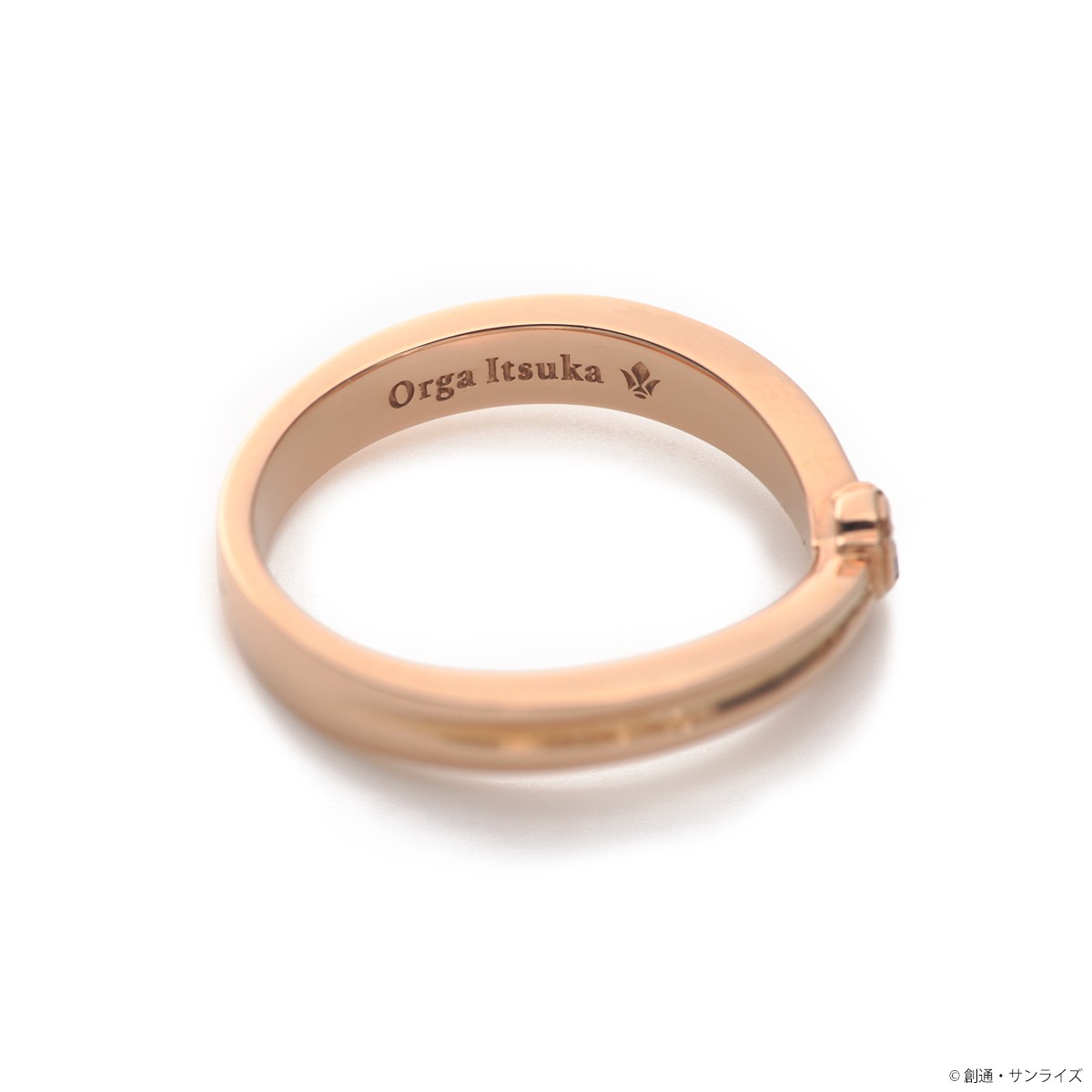 『機動戦士ガンダム 鉄血のオルフェンズ』10周年をお祝いしたシルバーリングです。オルガ・イツカモデルは、ピンクゴールドコーティングを施した首元のスカーフを思わせるV字型のデザインに、旗艦イサリビをモチーフとして中央にあしらいました。