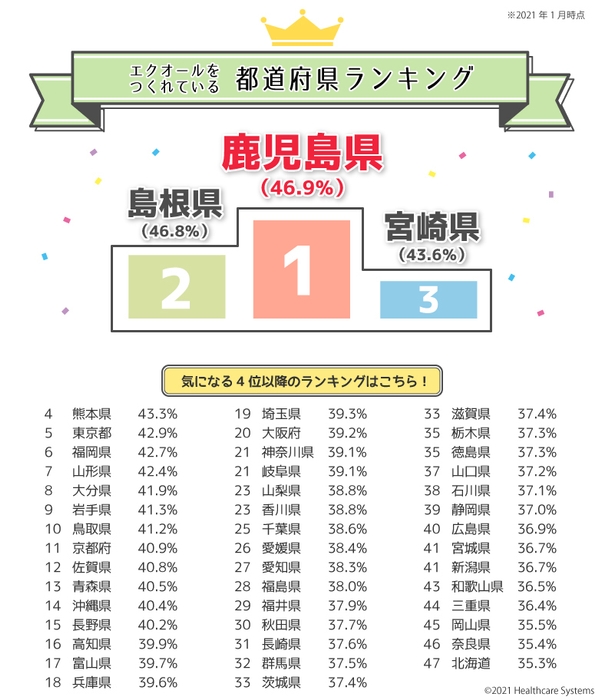 我慢も諦めもしない!自分らしいホルモン対策を 女性の健康週間にむけて都道府県別 『エクオール』ランキング発表!