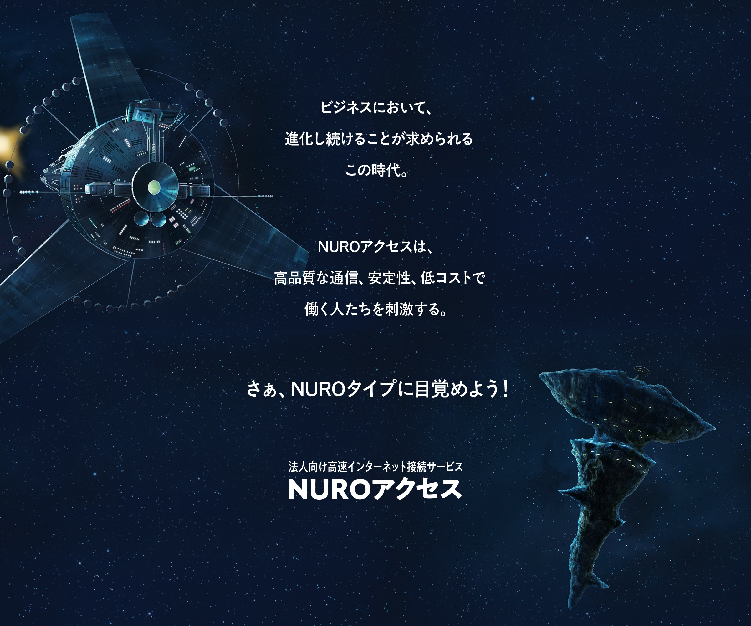 「NURO Biz」は法人向けICTソリューションブランドです。主要サービスである「NUROアクセス」は高速インターネット接続サービスで、圧倒的な通信速度・安定性・コストパフォーマンスによりビジネスをサポートしています。