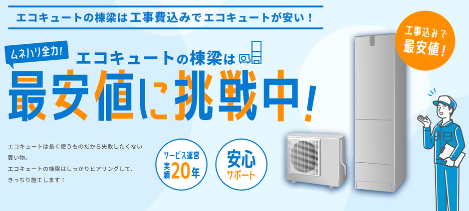 商品価格最大84%OFF!最安値に挑戦、 エコキュート工事を依頼できるWebサイト 「エコキュートの棟梁」サービス開始