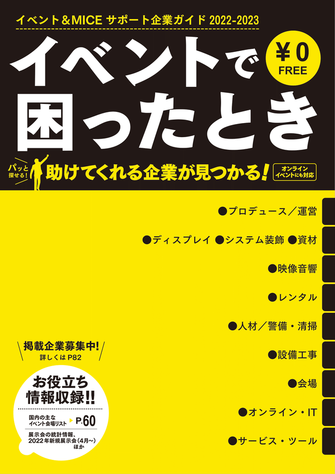 展示会の出展や企業イベントで困ったときに役立つ フリーペーパー最新号 「イベント&MICEサポート企業ガイド2022-2023」 3月31日発行!