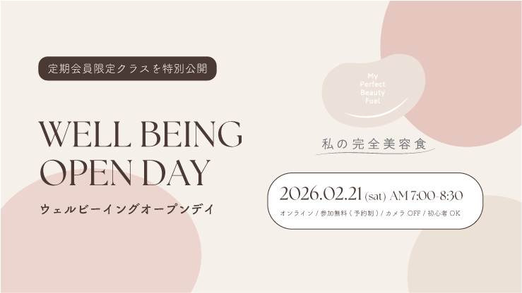 As-me エステール株式会社(所在地:東京都中央区/代表取締役社長:丸山 雅史)が展開する、食を通じて健康美をサポートするブランド「私の完全美容食」では、定期購入者向けのヨガや栄養学のオンラインウェルビーイングプログラムを毎月開催しています。通常は定期購入者限定ですが、2026年2月21日(土)は特別に一般公開いたします。