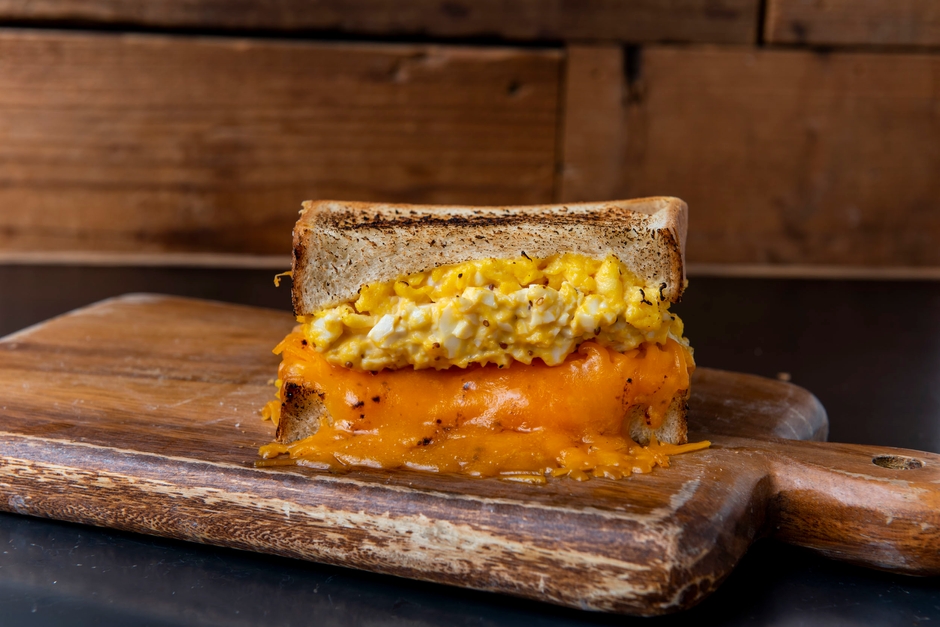 たっぷりの自家製のタルタル卵とスクランブルエッグを挟み込み、チーズのまったり感に合わせた最高の一品となっております。