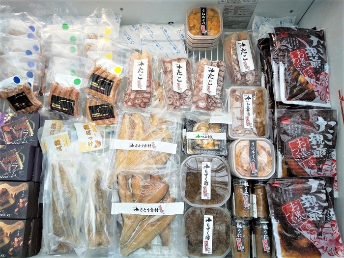 北海道の応援ブースでは北海道の海の幸・山の幸がならび、新鮮な無農薬野菜、種類豊富なシフォンケーキ、新潟魚沼の新米コシヒカリや、スペインのカラスミもマグロやマルーカなど、なかなか他では見かけない種類も。