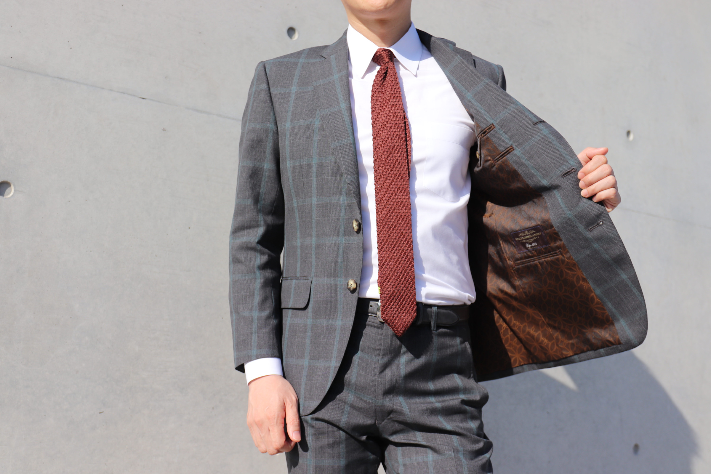 生地は少し派手めなものを選びましたね。私はスーツを着る機会は月に数回程度です。