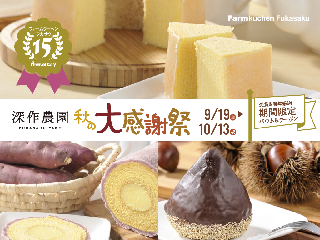 “茨城・鉾田から感謝を込めて”深作農園『秋の大感謝祭』開催! 受賞記念&15周年・10周年を祝う秋限定スイーツと収穫祭