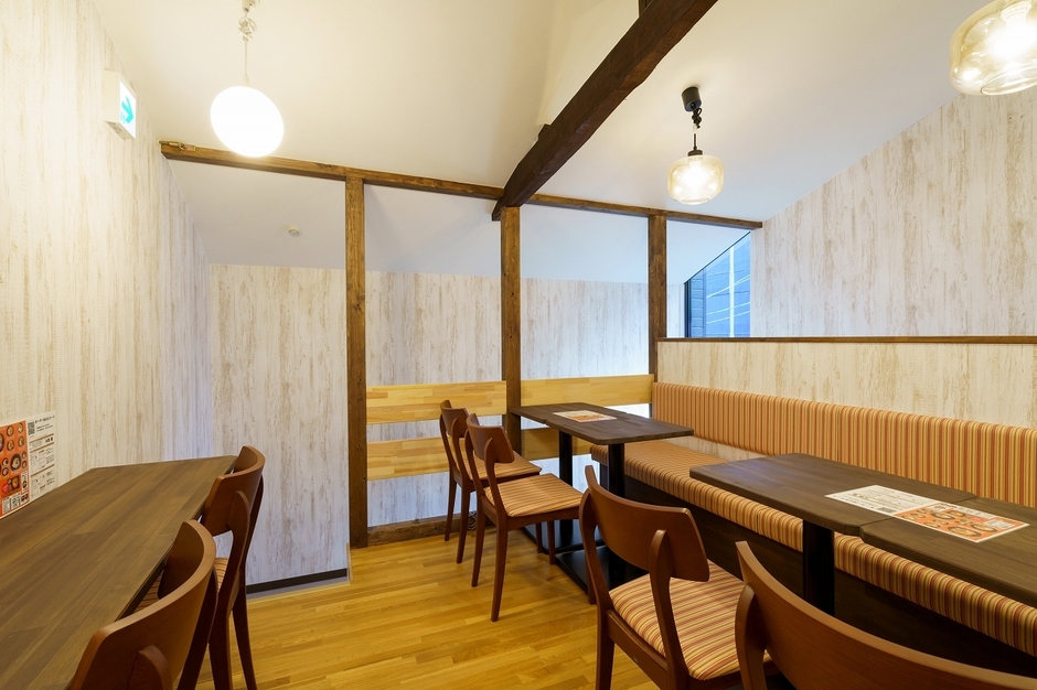 店内は2Fと3Fにまたがる立体的な作り。2Fはキッチンがメインで、カウンター席は4席。3Fはカウンター席4席と2名がけテーブル3卓。落ち着いた雰囲気で、お1人様も気軽にお食事いただけます。