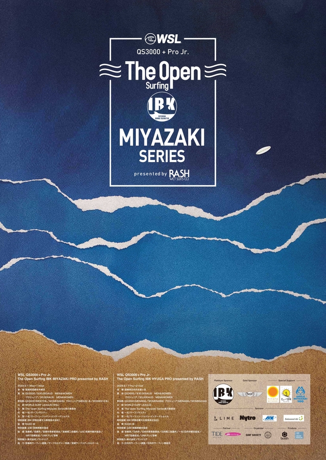 WSL公認「The Open Surfing Miyazaki Series」が 9月11日(水)に開幕!第1弾は「QS3000 IBK宮崎プロ・ WSLプロジュニア Presented by RASH」 稲葉玲王、松田詩野、都筑有夢路のオリンピアンもエントリー 宮崎県宮崎市木崎浜で開催