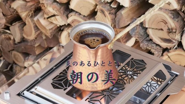 コーヒーを淹れ、炎を眺めながらゆっくりと始める朝の儀式。静かな目覚めに寄り添います。