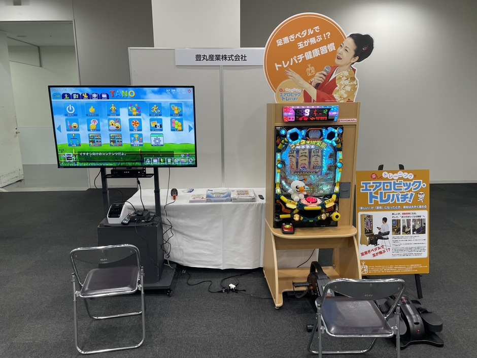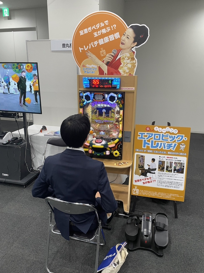 「エアロビックトレパチ!」は、足漕ぎペダルを漕ぐことで玉が飛ぶという福祉専用のパチンコ台で、下肢の筋力強化と有酸素運動を同時に行えるユニークな機器です。パチンコの要素を取り入れたデザインによりパチンコを楽しみながら健康習慣の形成をサポートします。特に高齢者施設でのレクリエーションとしての導入が進んでいます。
