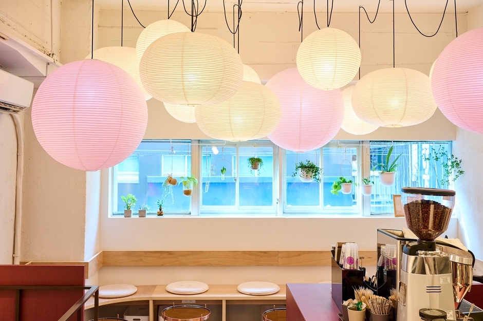 和みを感じる大きな提灯の下、自慢のこし餡を使った新しくて懐かしいスイーツに癒されるひとときをお過ごしください。