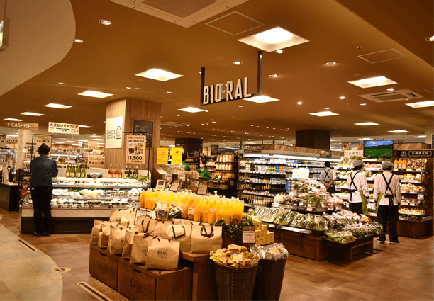 からだに優しい素材や製法、健康や自然志向にあわせたプライベートブランド「BIO-RAL」商品や、「オーガニック・ローカル・ヘルシー・サステナビリティ」のコンセプトに沿った商品など幅広く取りそろえています。加工食品以外にも、生産者の顔が見える有機野菜・果物も品ぞろえいたします。