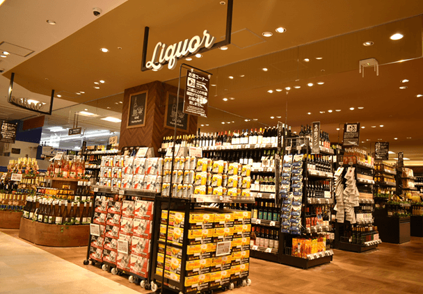酒売り場も2階に移設したことで大幅に売り場が拡大しました。お好みのお酒が見つかるはず!