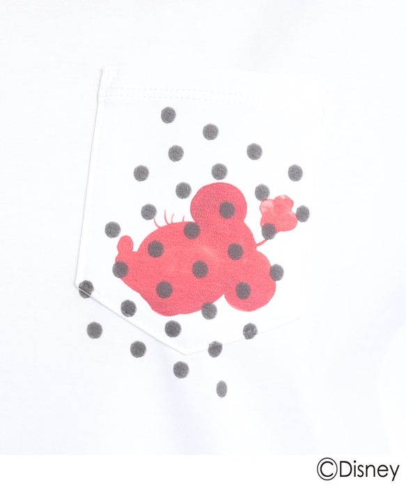 ベーシックなポケットTシャツにミニーマウスのシルエットをデザイン。