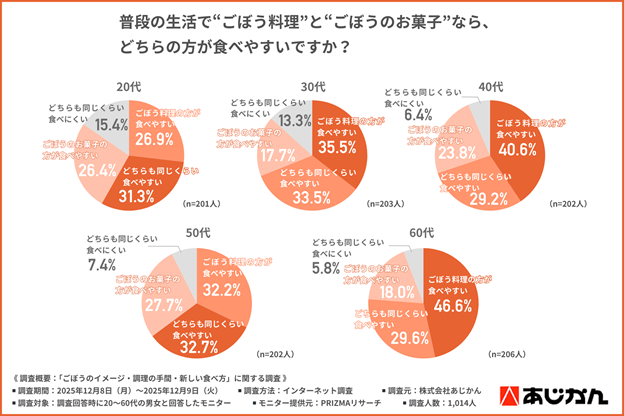 ごぼうのお菓子と料理の食べやすさは年代に意識差、中でも50代は手軽なごぼう菓子への期待が高い?
