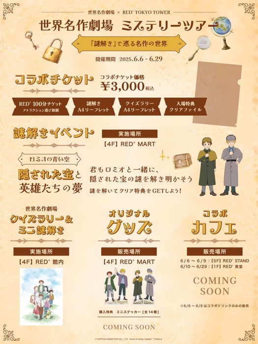 日本アニメーション株式会社(本社:東京都中央区、代表取締役社長:石川和子)がアニメーション制作・ライセンス展開を行う「世界名作劇場」シリーズの謎解きイベント「世界名作劇場ミステリーツアー」を開催することが決定いたしました。2025年6月6日(金)~6月29日(日)の期間、RED°TOKYO TOWER (所在: 東京都港区)にて開催いたします。