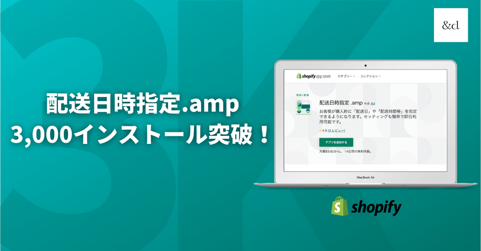 「いいモノゴトをおこす」をテーマに、Eコマース領域でShopifyアプリ開発事業を展開する株式会社and.d(本社:東京都町田市、代表取締役:深澤 大気、以下 and.d)は、当社が提供するShopifyアプリ「.amp(ドットアンプ)」シリーズ(※)で提供する「配送日時指定.amp」(以下、本アプリ)において、2021年11月に累計インストール数3,000件を突破したことをお知らせいたします。