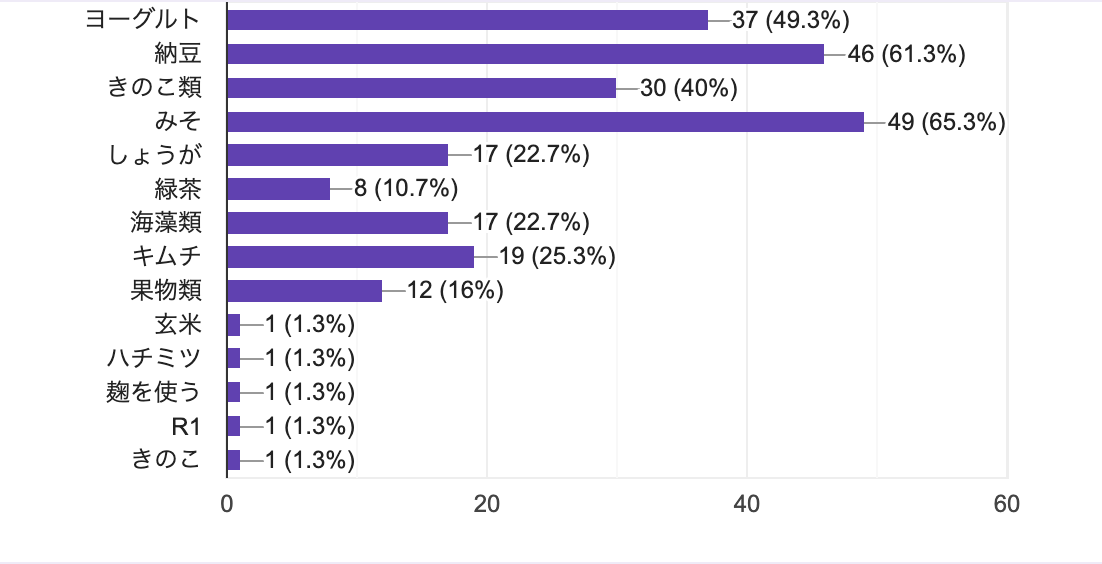 ■免疫力を高めために積極的に摂取している食材を聞くと、1位「みそ」(65.3%)、2位「納豆」(61.3%)、3位「ヨーグルト」(49.3%)という結果でした。