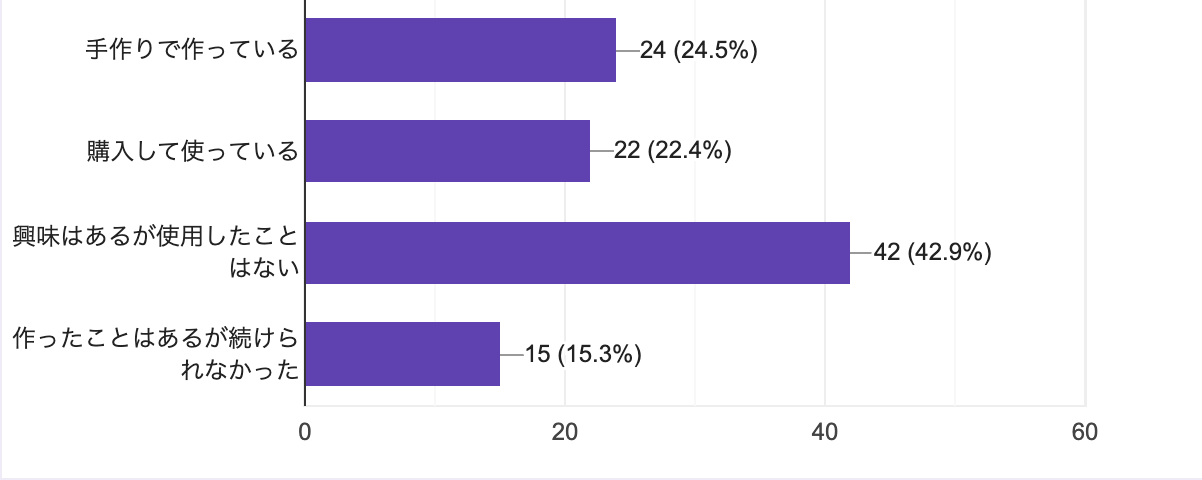 ■発酵調味料(塩麹やしょうゆ麹)を使ったことがあるかを聞くと、手作りの発酵調味料や、市販の発酵調味料を使っている人が46.9%、興味はあるけれど使ったことがない人42.9%という結果でした。