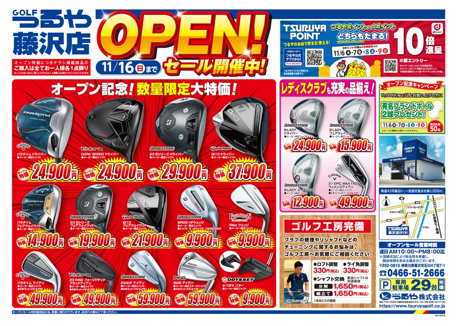 つるやゴルフ藤沢店が11月6日にオープン 記念セールなどを実施!