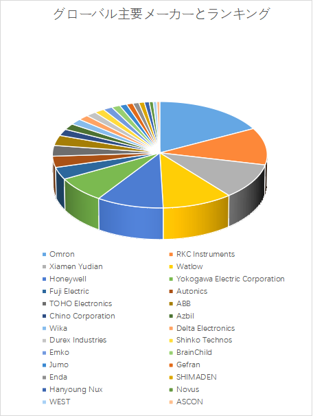 これら上位メーカーは、制御精度・応答速度・通信規格対応力の三要素を核に競争を繰り広げている。日本勢は、Omron、Azbil、Yokogawa、RKCなどを中心に、信頼性・耐環境性・多用途対応力で優位性を保持しており、製造装置との統合制御におけるノウハウが強みである。一方、欧米勢のHoneywellやABB、Watlowなどは、プロセス産業やエネルギー分野でのシステム統合力を武器に、ソフトウェア主導の高機能制御を展開している。また、中国・台湾企業(Xiamen Yudian、Delta Electronics)はコスト競争力とIoT連携対応を武器に、アジア新興市場でシェアを拡大している。市場はすでに価格競争から脱し、AI制御、クラウド連携、自己診断機能といった「知能化技術」を軸とした再編局面に入りつつある。