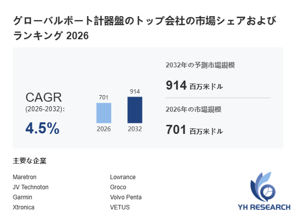 上記の図表/データは、YHResearchの最新レポート「グローバルボート計器盤のトップ会社の市場シェアおよびランキング 2026」から引用されています。
