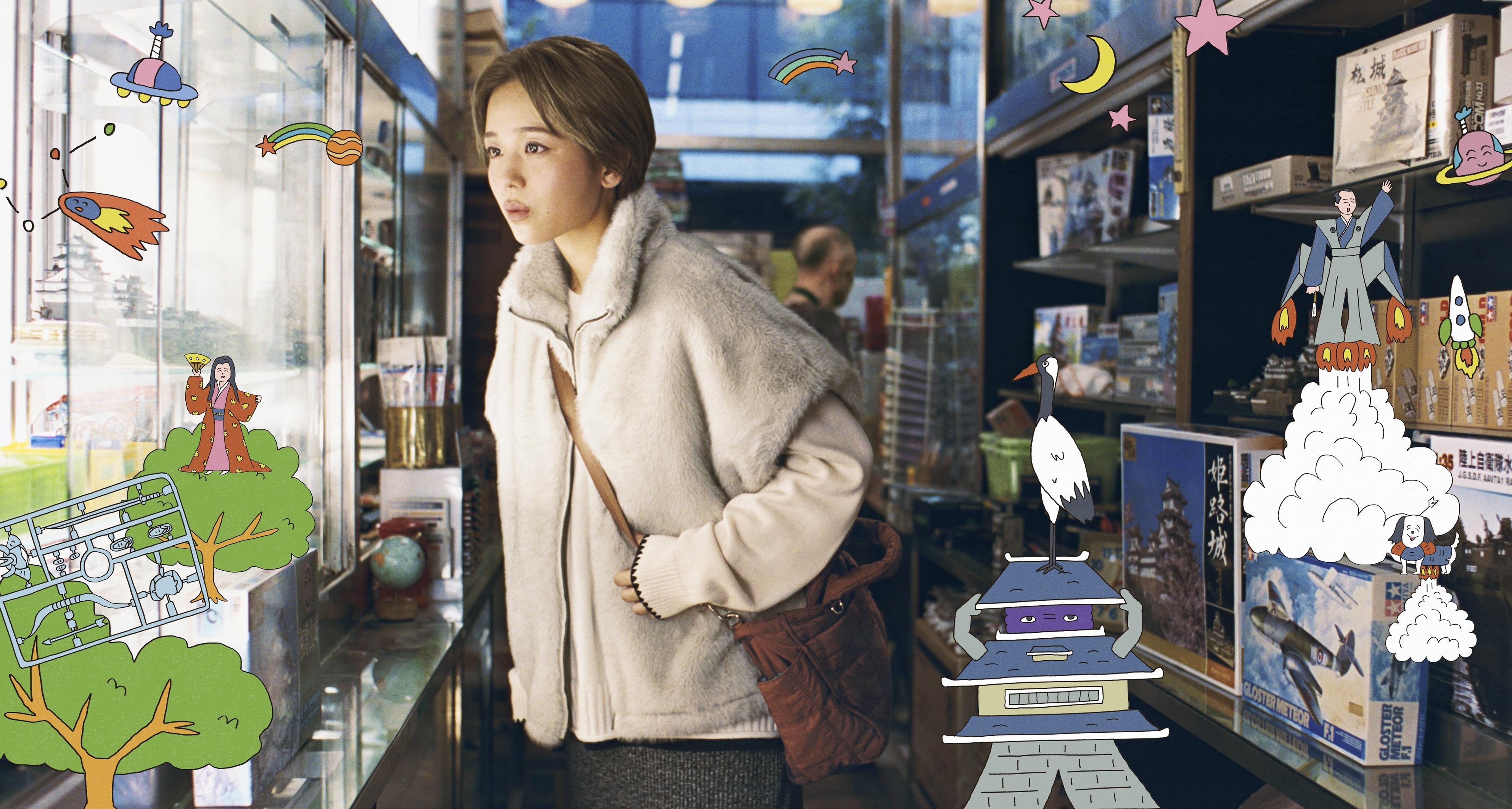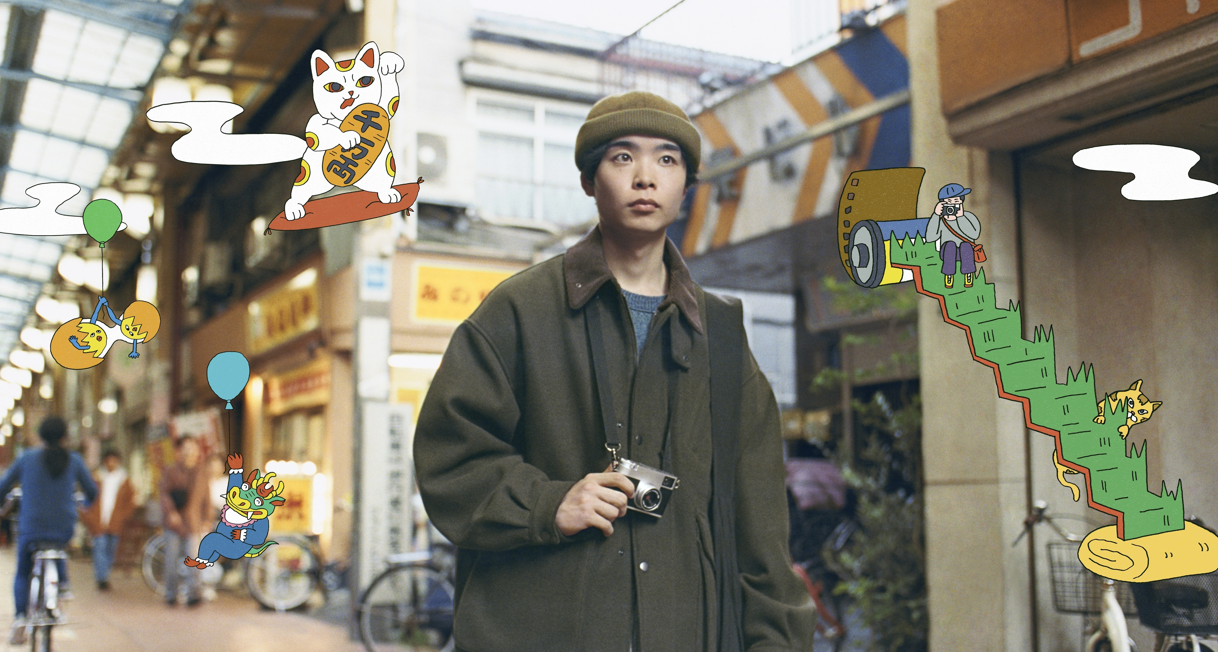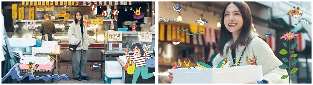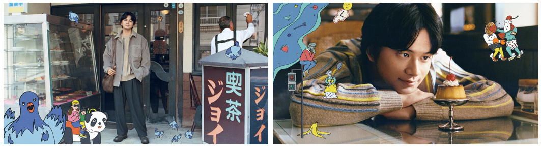 動画では、とある商店街を舞台に、北村匠海さん、清原果耶さんの他、ユカリ役の真雪さん、マモル役の辻陸さんを含めた4名が、日常の中でいつもと違う場所に出かけたことをきっかけに、素敵な何かとの「まさかの出会い」を果たします。登場人物にとって大切な日になったことを、記念写真を撮る描写でポップに表現。予想外の出会いに心が躍るラストシーンは、イラストレーターのエビアヤノさんによるイラストが盛り上げます。