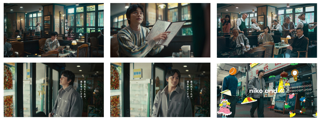 今回のキャンペーンムービーのテーマは「旅のキオク」。北村さんと清原さんにサブキャストを加えた4名を主人公とした計4本のムービーを公開します。日常の中でいつもと違う場所=「日常における旅」に出かけ、思いがけない新しいものとの出会いをきっかけに、新しいお気に入りや得意料理、趣味ができた4名。その先の日常が変わるきっかけとなった日を、記念すべき日として回想するストーリーです。期待通りではなく、予想外の出会いによって意外な「にあう」が見つかるというストーリーを通して、「niko and ...」のブランドキャッチコピー“であうにあう”というメッセージを表現しました。楽曲は、奥田民生さんの名曲「さすらい」を、歌手の永野亮さん、岩崎優也さん、かめがいあやこさん、室田夏海さんの4名がマイクリレーをしながら合唱スタイルで歌い上げます。